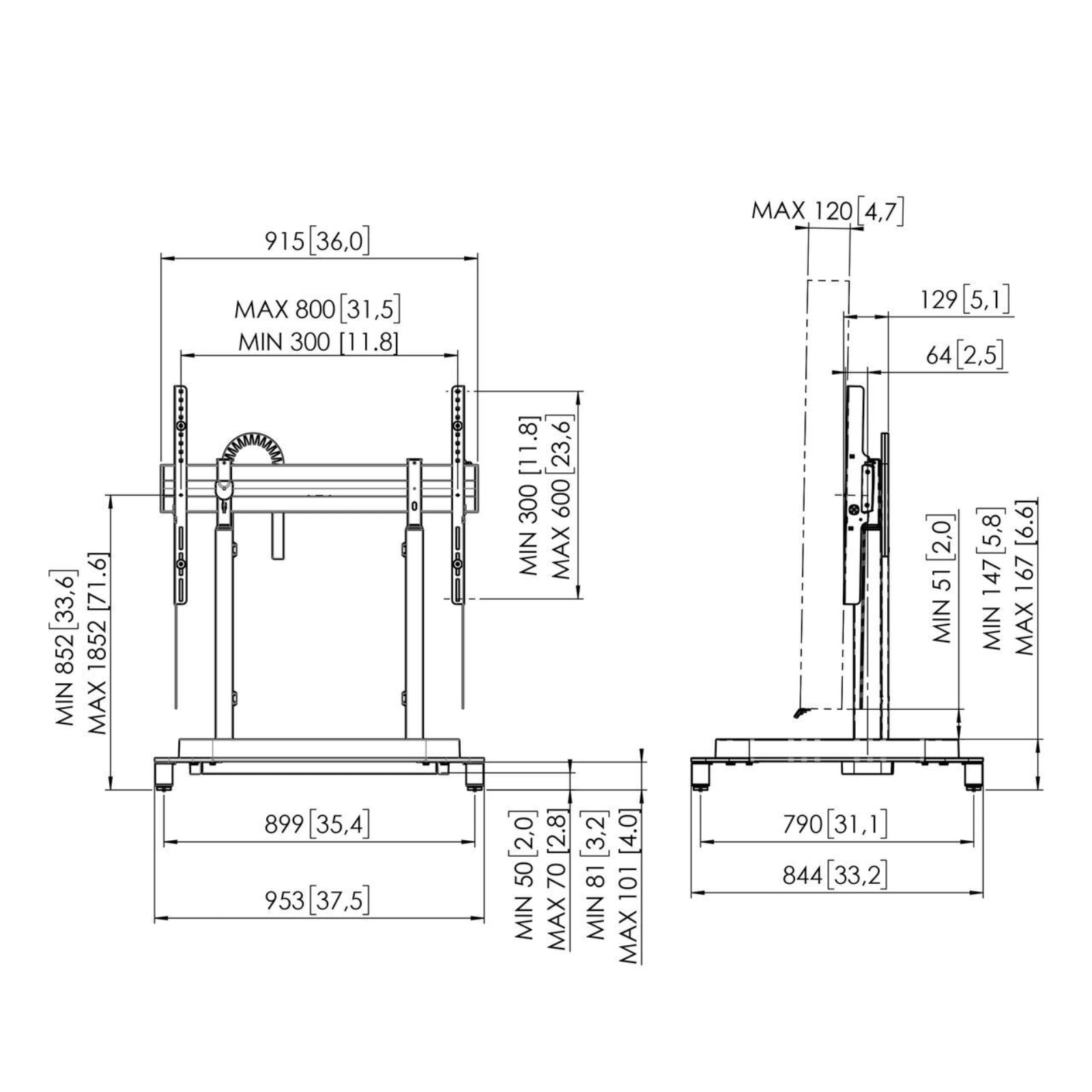 - Min. distance to floor - center display (mm): 862