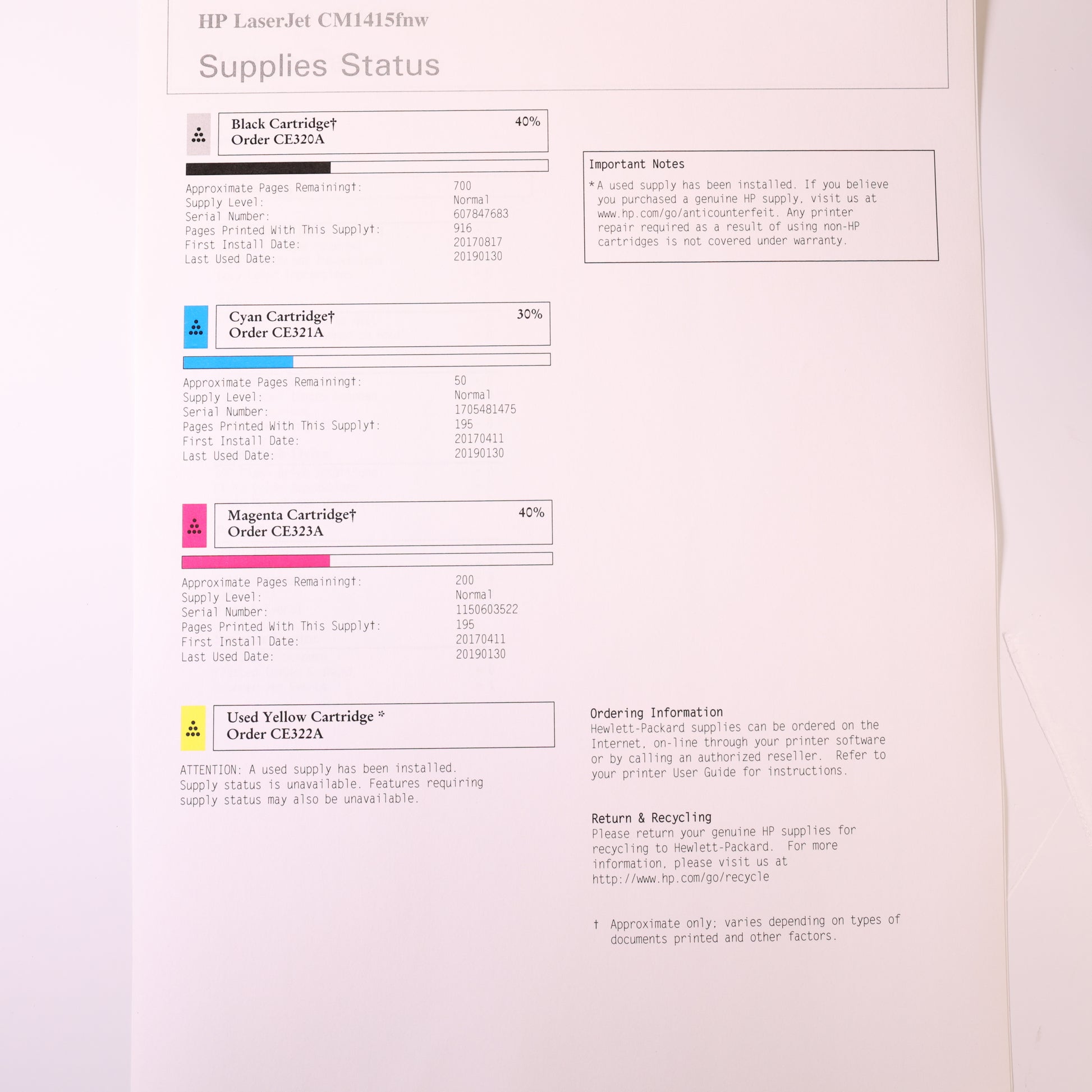 Part/Model Number: HP LaserJet CM1415fnw  /  CE862A