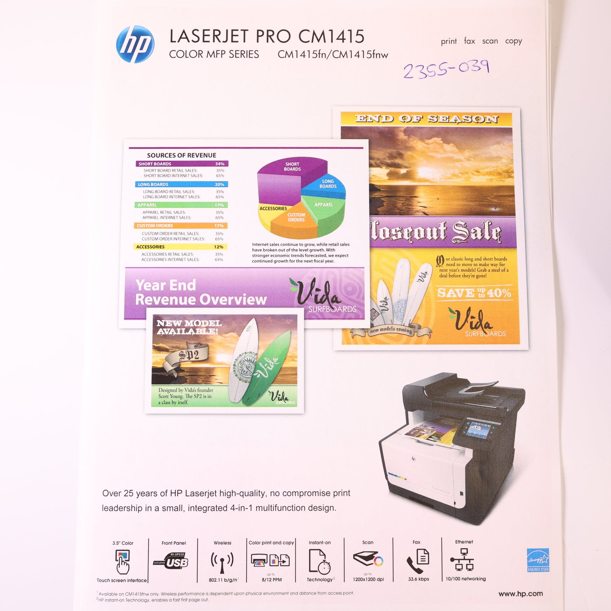 • Product Summary: HP CM1415NFW A4 Colour Laser Printer
