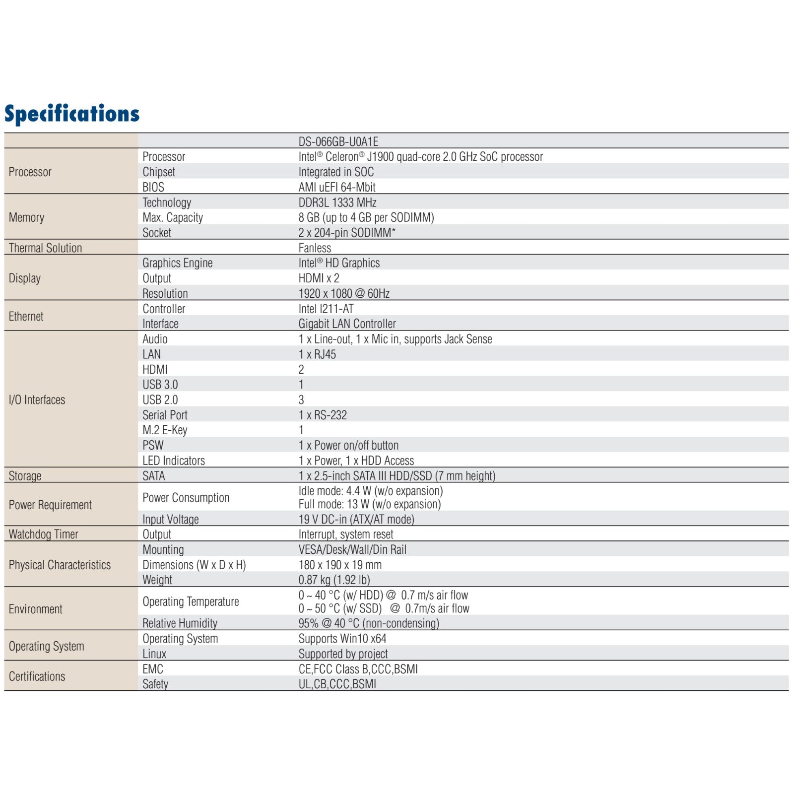 Part/Model Number: DS-066  /  DS-066GB, J1900, 4DDR3, 64SSD,W10-AUK  /  DS066GB2201-T