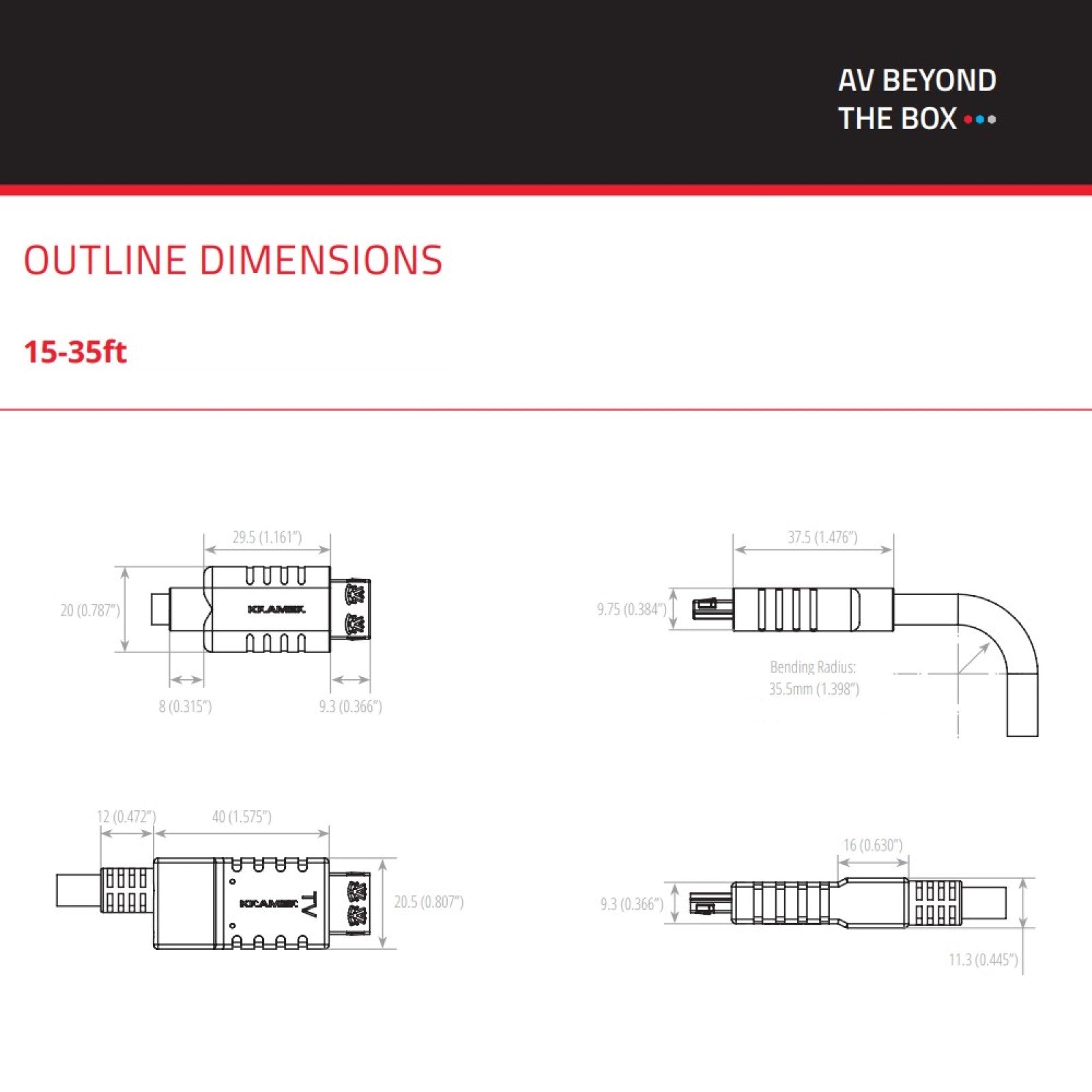 - Cable Bending radius: 35.5mm
