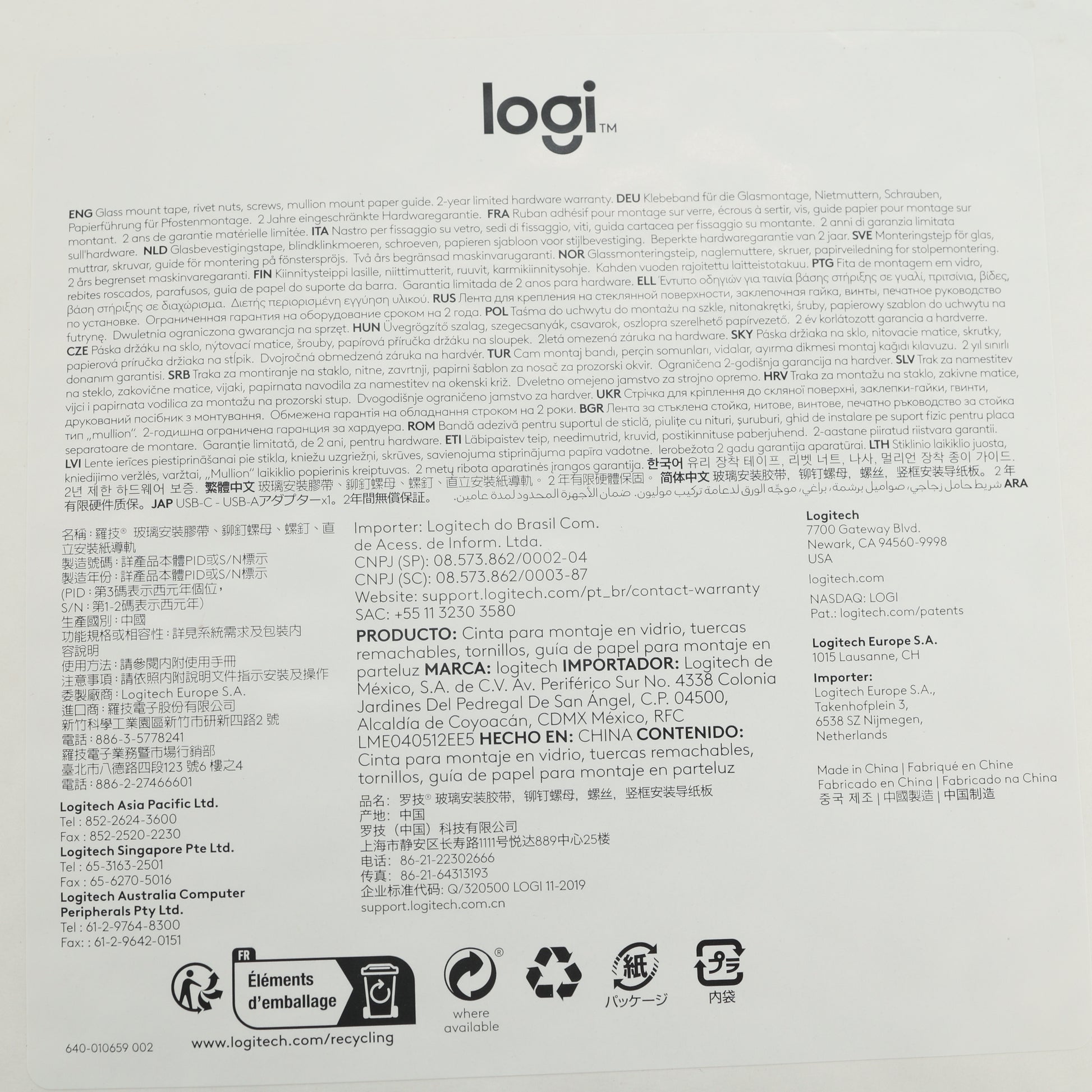 - Logitech Tap Scheduler Mounting Tape and Screws Kit Graphite 993-002983