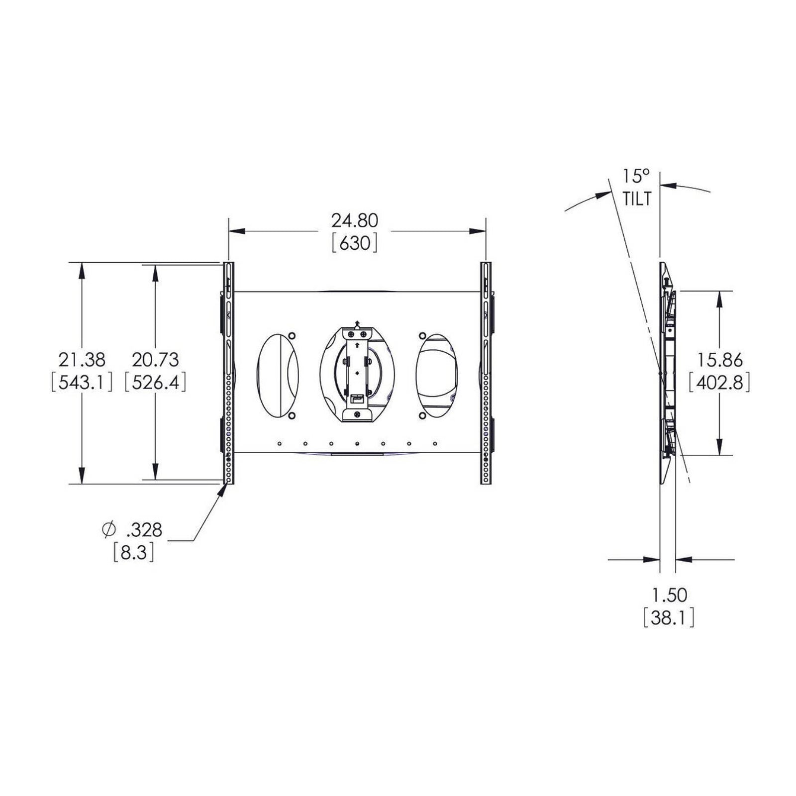 - Bracket Tilt: 0–15°